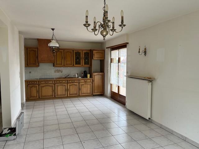 Maison individuelle de plain pied avec une entrée, une cuisine équipée, un salon/séjour, deux chambres, une salle de bains et un wc.